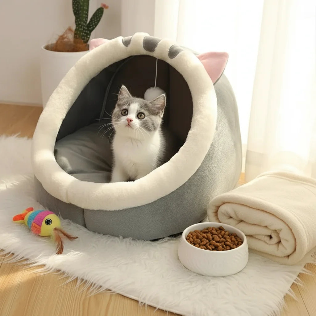 GLOBAL MALL MND Lit pour chat cartoon - Confort et style ! est le couchage parfait pour offrir à votre félin un espace douillet, sécurisé et plein de charme. Avec son design cartoon adorable et moderne, ce lit apporte une touche décorative unique à votre intérieur tout en assurant un confort optimal à votre chat.