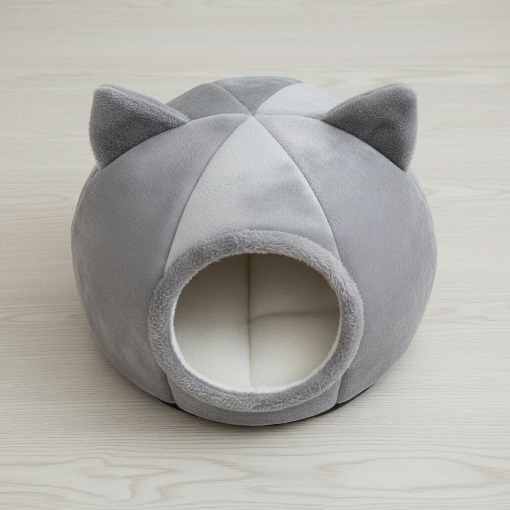 Nid douillet pour chat GLOBAL MALL MND en tissu doux avec oreilles grises et entrée confortable.