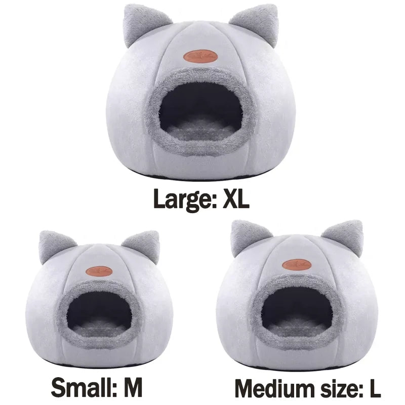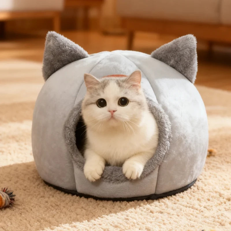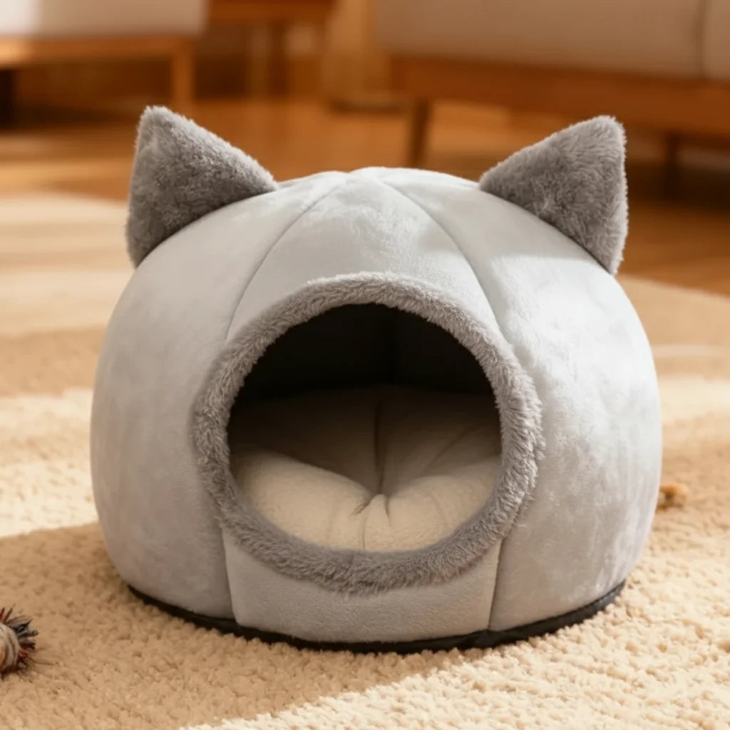 GLOBAL MALL MND Nid Douillet pour Chat en tailles petites, moyennes et grandes avec oreilles, couleur grise.
