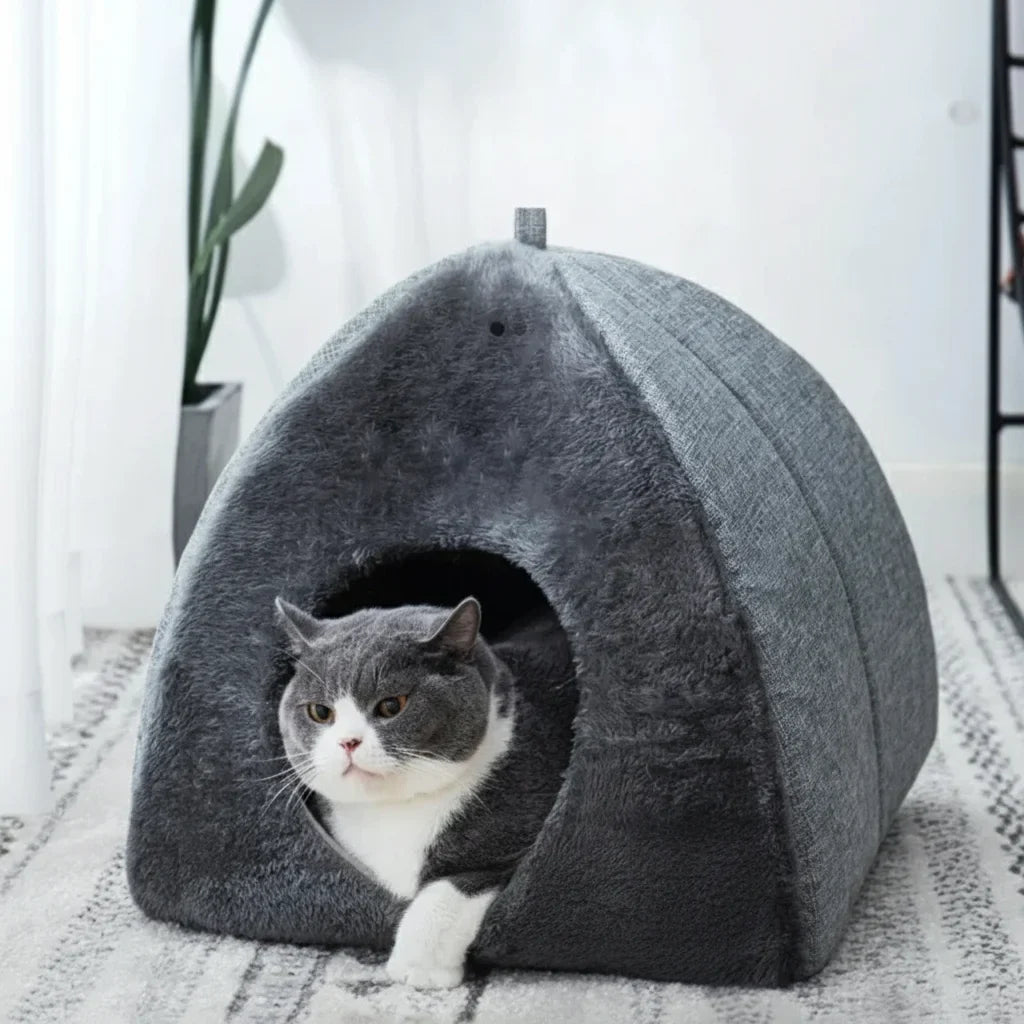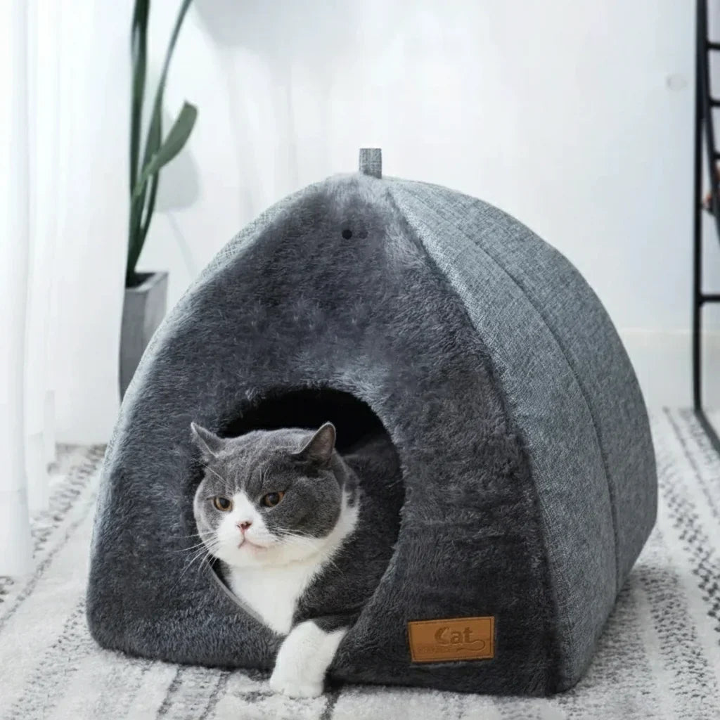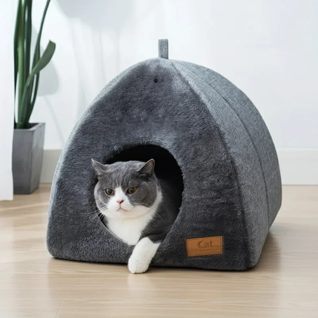 GLOBAL MALL MND Nid Triangulaire pour Chats - Confort et Sécurité offre à votre félin un espace douillet, rassurant et parfaitement adapté à ses besoins naturels. Grâce à sa forme triangulaire semi-fermée, ce nid procure un sentiment de protection tout en laissant suffisamment d’espace pour un repos confortable.