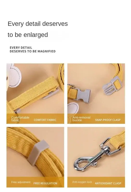 GLOBAL MALL MND introduces the adorable Bee Dog Harness & Leash Set, specially designed for small to medium pets. Combining comfort, style, and safety, this adjustable harness ensures your furry friend can enjoy walks without strain or discomfort. The charming cartoon bee design adds a playful touch, making your pet the center of attention wherever you go.