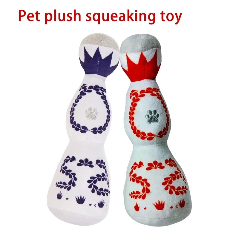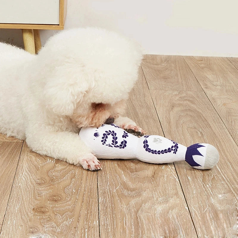 Funny Tequila Dog Toy Blue And White Porcelain Plush Dog Toy With Squeak Interactive Games For Dogs Birthday Toy Pet Accessories