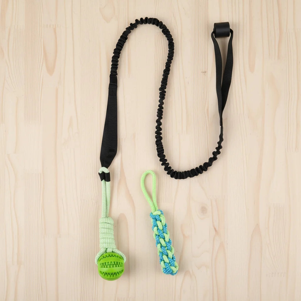 Action Triple Action : Trois jouets différents (cordes tressées et balle) pour varier les plaisirs : lancer, tirer et mâcher.